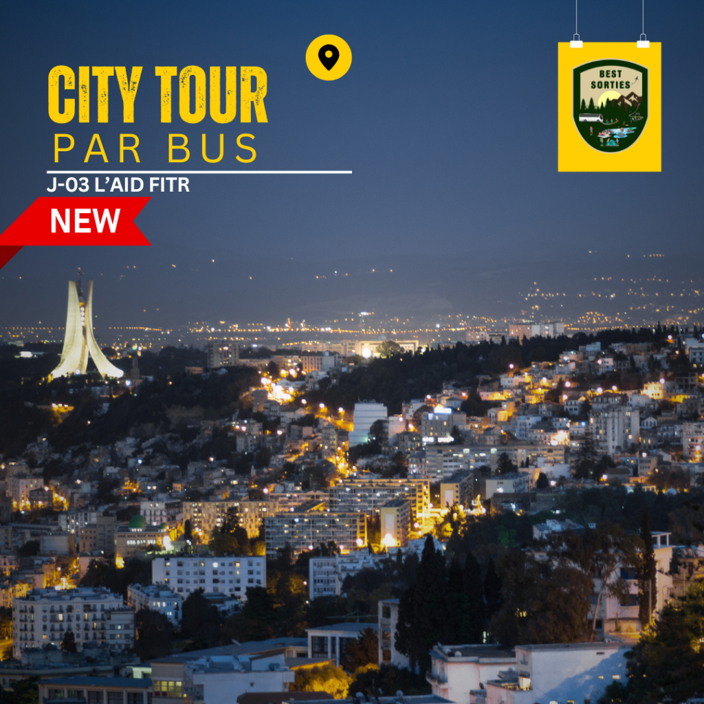 🆕CITY TOUR [TOUR D’ALGER PAR BUS] DÉCOUVRIR LA VILLE D’ALGER (DEJEUNER INCLUS) PROGRAMME JEUDI 30 AVRIL 2026SAMEDI 02 MAI 2026 BEST SORTIES vous propose une visite culturelle guidée de la ville d’ALGER par bus [CITY TOUR] pour une journée entière avec plusieurs points de ramassage LE PROGRAMME DE LA JOURNÉE EST TRÈS RICHE EN HISTOIRE AVEC LA VISITE DE PLUSIEURS SITES DE LA VILLE D’ALGER Destination : CITY TOUR (DEJEUNER INCLUS) Type de Sortie : Visite culturelle guidée PROGRAMME: Visite de la grande mosquée d’Alger Visite de notre dame d’Afrique Visite de la casbah d’Alger Visite des endroits qui ont une vue panoramique sur la bais d’Alger Tarif : 4500 Dzd Le Tarif inclut : Transport Aller/retour + Assistance durant la journée Heure de départ : 9h30 Matin / H de Retour estimée : 19h30 Sur Alger Point de départ : Ruisseau, a coté du chemin de TRAM-WAY a coté du parking près de la station de métro (BEST SORTIES POINT DE DÉPART SUR GOOGLE MAPS) Équipement adéquat pour la sortie : Casquette A prévoir : Déjeuner (Un arrêt durant le trajet pour les achats sinon sur place) JE CHOISIS MA DATE